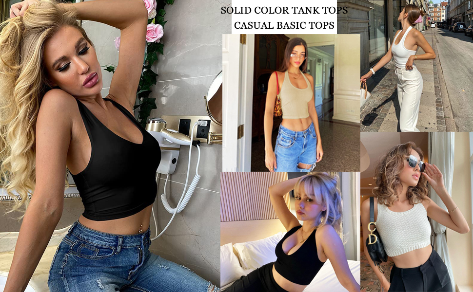 - This crop tank tops is quite cute for teen girls and fashion women ladies,feature with U neck,halter neck ,cropped length,solid,tight slim fit,basic style which is womens favorite.